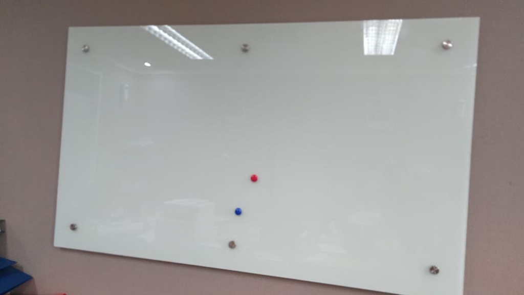 Rp 1.920.000Glassboard – Papan Tulis Kaca 100×120 6mm Magnetic Spesifikasi Glassboard : Kaca 6mm Permukaan Magnetic Stiker putih susu Pen gantung Tempat penghapus aluminium Glassboard Dapat dipasang pada tembok beton, partisi gypsum & triplek.